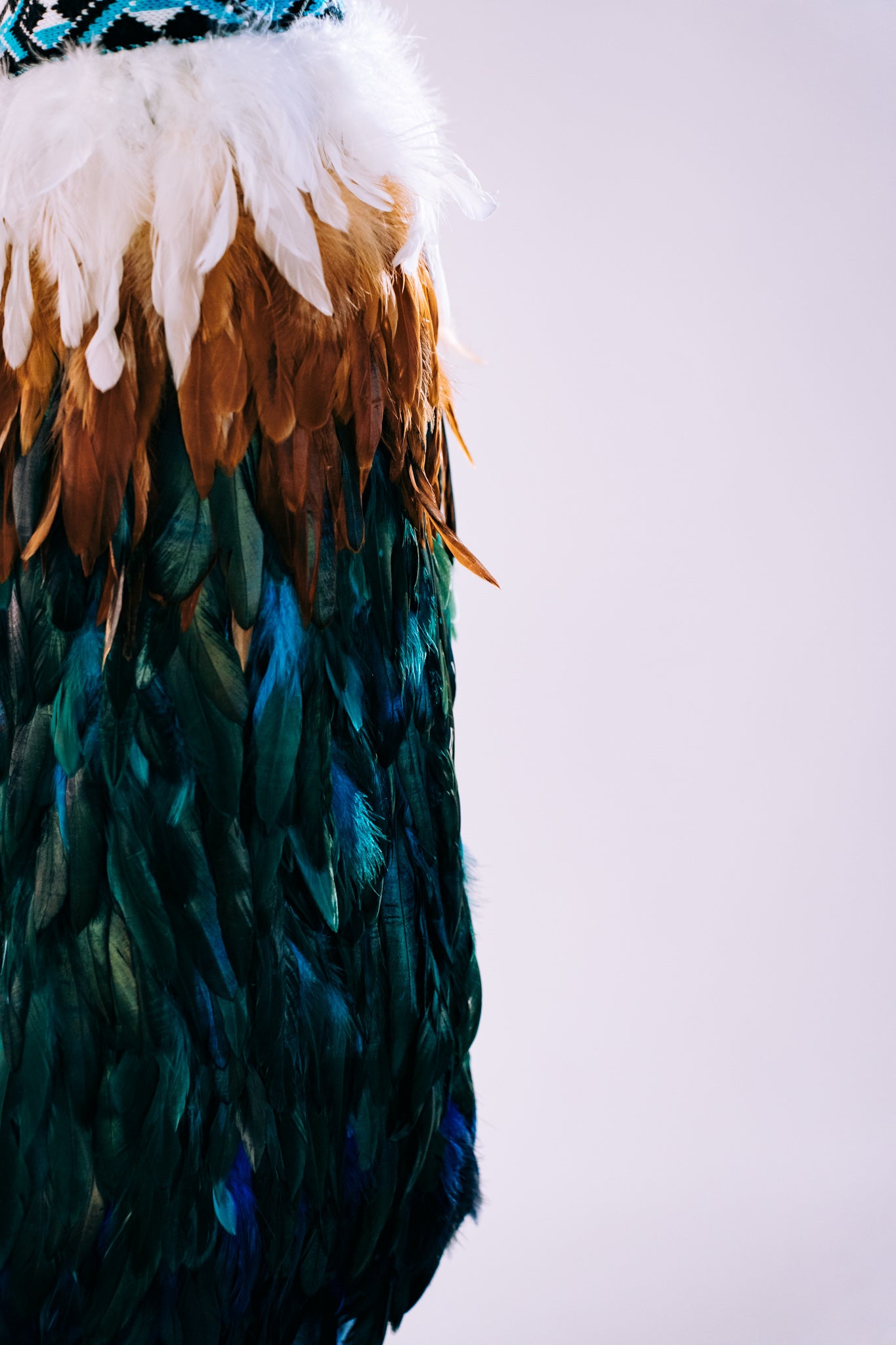 Feathers: Our contemporary korowai designs include a variety of colored craft feathers for fashion industry clothing and costumes, particularly hen and rooster coque feathers.