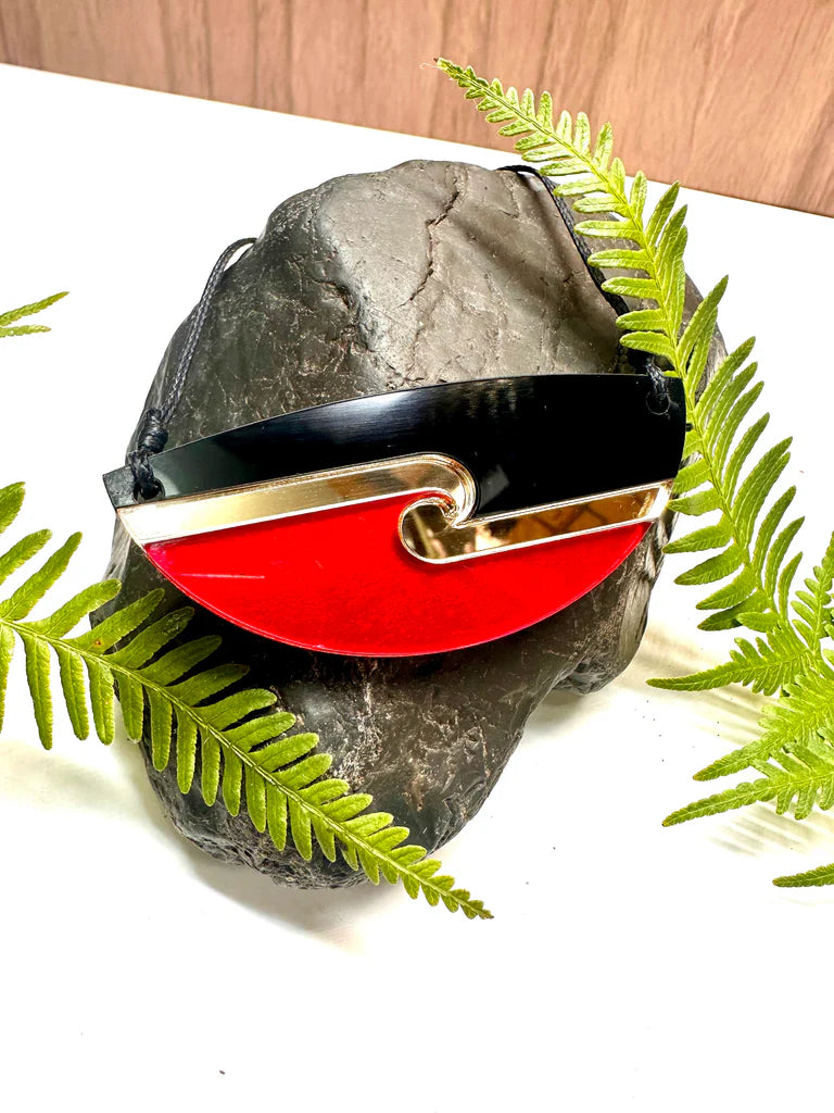 Red represents Te Whei Ao, the realm of Coming into Being. It symbolises female, active, flashing, south, yelling, emergence, forests, land, gestation and spirals. Red is Papatuanuku, Earth Mother, the sustainer of all living things. Red is the colour of earth from which the first human was made.