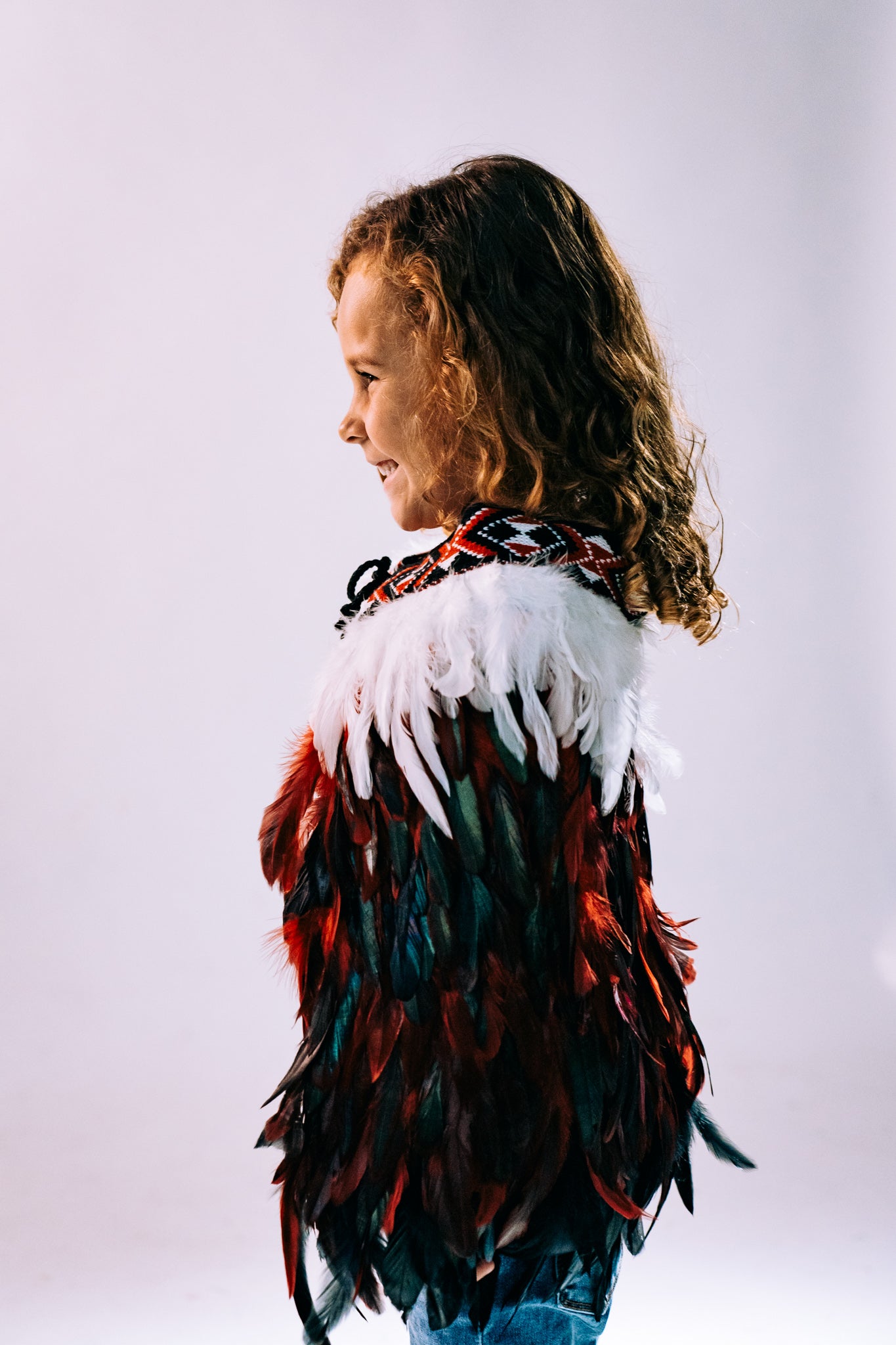 Feathers: Our contemporary korowai designs include a variety of colored craft feathers for fashion industry clothing and costumes, particularly hen and rooster coque feathers.