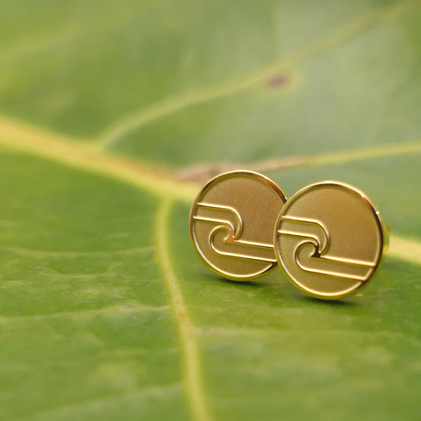 Available in 18K Gold, Rhodium Silver or Rose Gold Plated Stainless Steel Engraved Coin Pendant Stud Earrings in two sizes: Small 10mm or Large 12mm pendants.